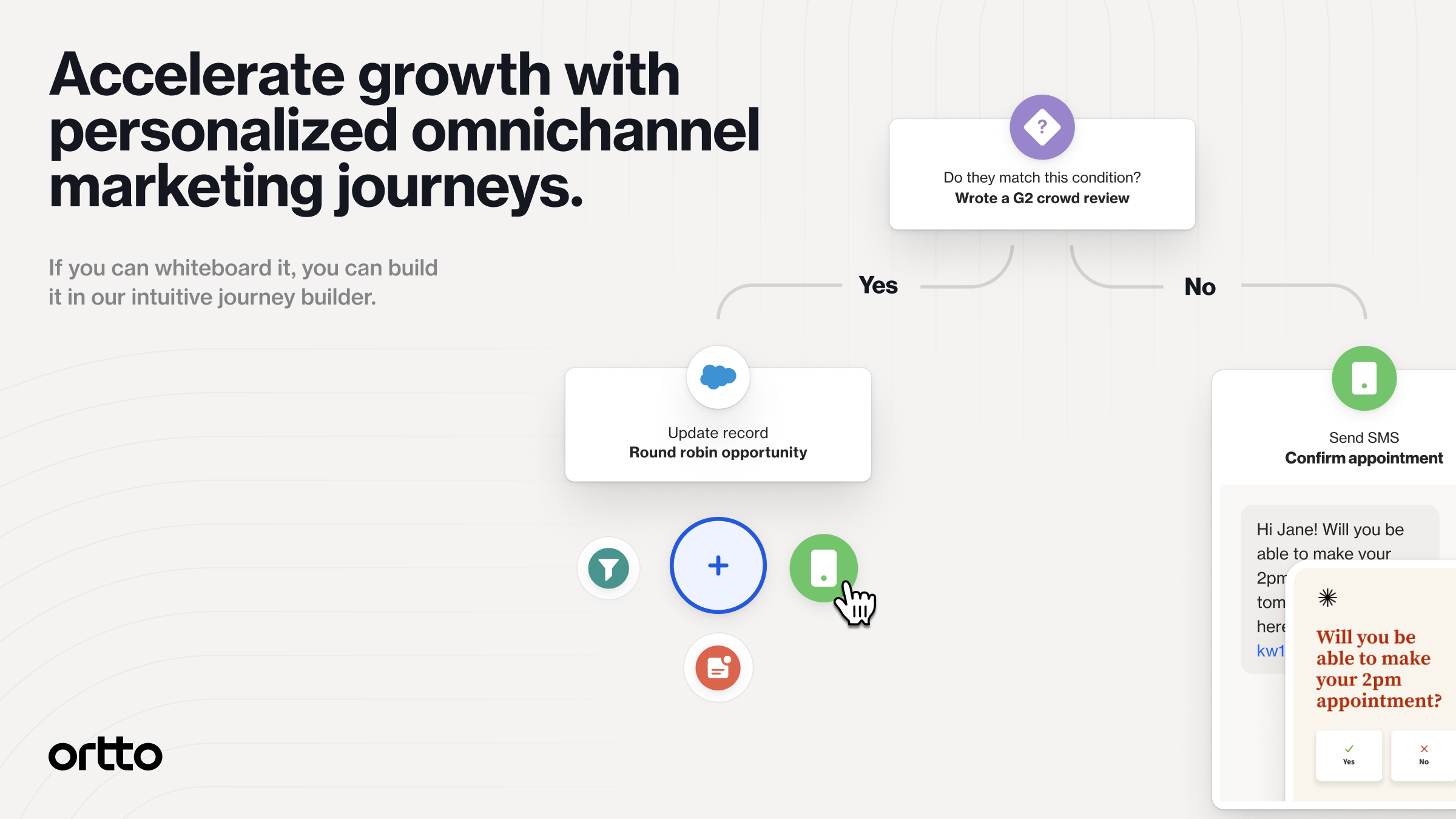 At time of writing this review, the landing page builder has just been released and that's a huge bonus. I've been using Typeform, which came at an additional cost, so having a solution in Ortto will be a cost saving. The available integrations, including Typeform, Salesforce and Meta, is one of the reasons our company chose this software. Implementing these integrations hasn't always been smooth, but that seems to be an issue with the capabilities and reliability of those tools, rather than Ortto.