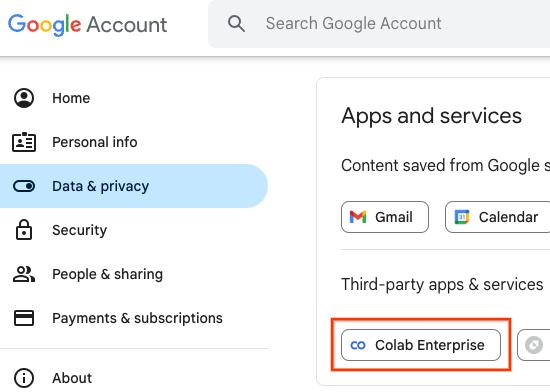 Click Account > Managed Google Account > Data and Privacy > Third-party Apps & Services.