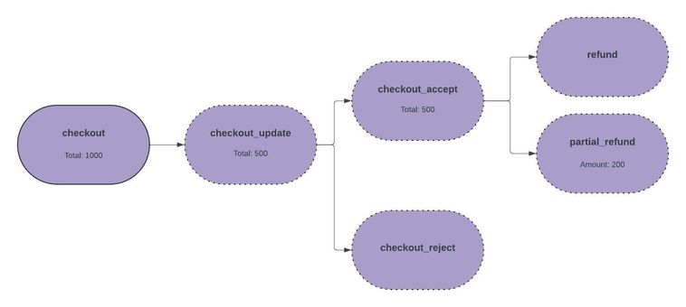 event to handle refunds. It restores the customer’s pre-purchase state, including purchase_total