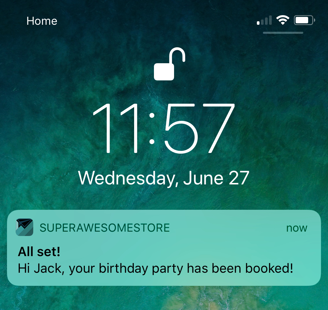 You can also send push notifications to iOS devices using Google’s Firebase Cloud Messaging (FCM) service. Make sure you use the correct payload for the messaging provider you set up in your Workspace Settings.