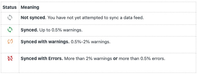 - Sync time: It shouldn't take more than 90 seconds for a transaction to propagate fully (from getting a status 202 from the Update Product Feed API to getting a 200 status from the Track Transaction Status API). If it takes longer than 90 seconds, we would consider it a bug, and you should contact Support.