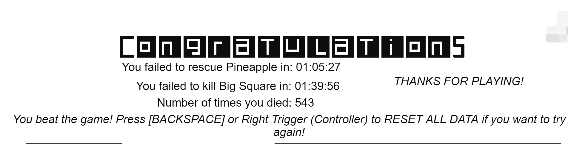 Damn, bro, i failed to kill big square in 48:58:23 once, that is impressive