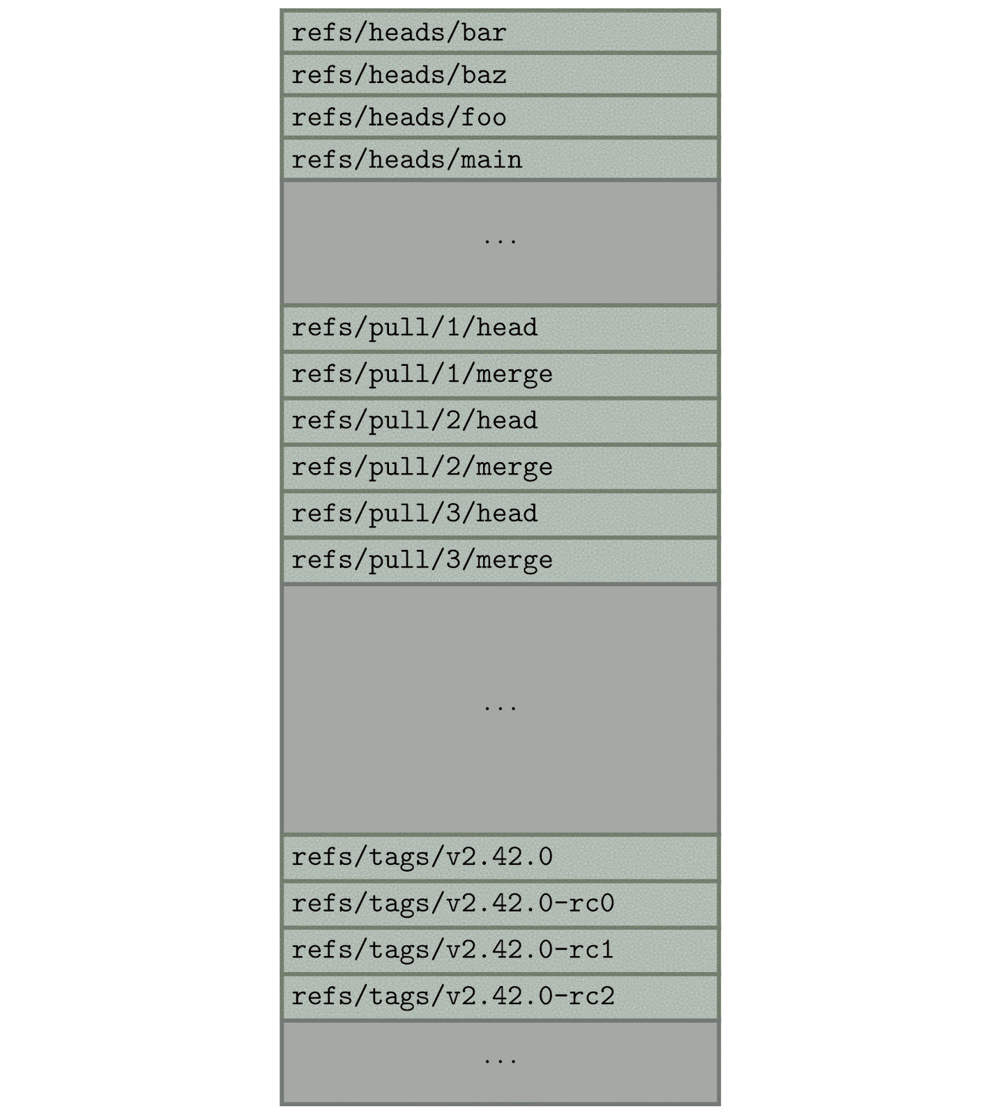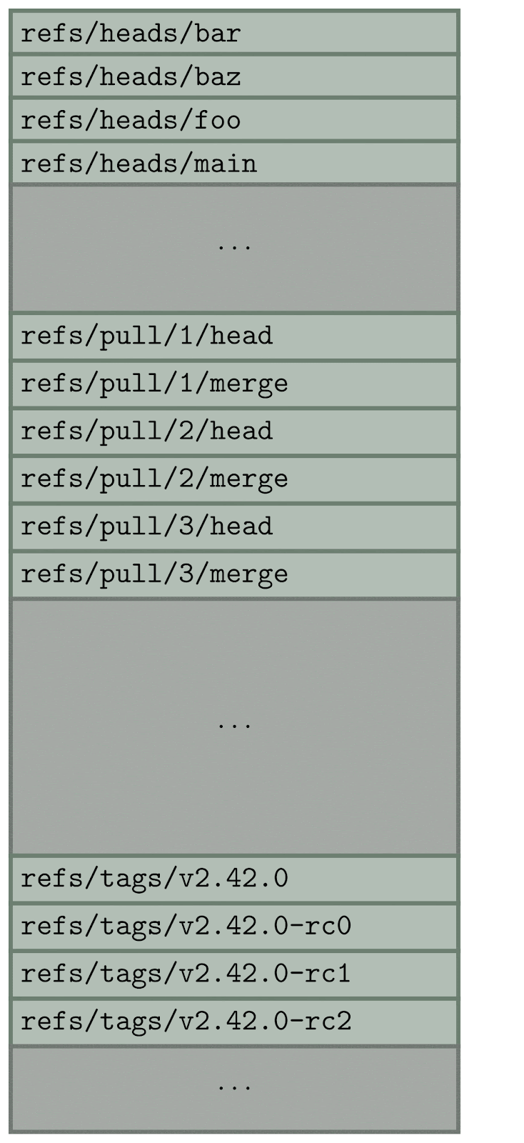 Here, we want to list every reference that doesn’t begin with refs/pull/