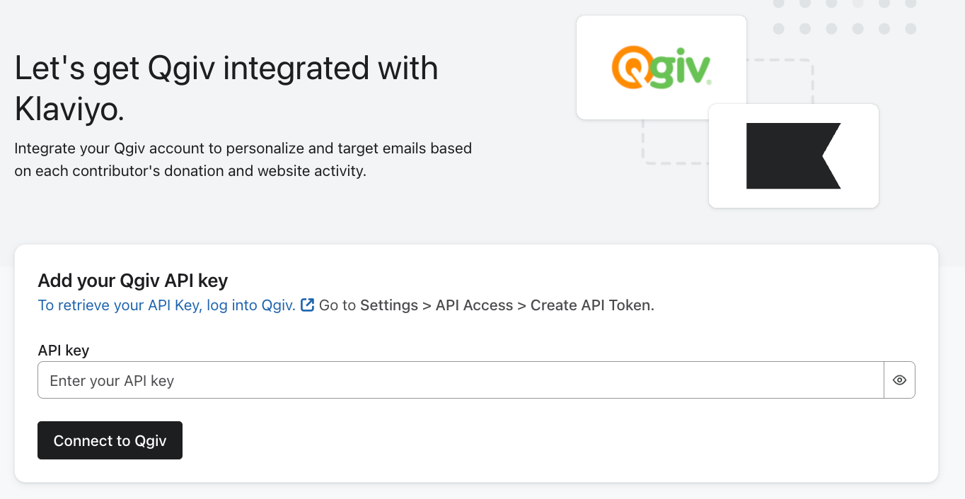 Zuerst musst du ein API-Token in Qgiv erstellen und dann die Integration in Klaviyo aktivieren.