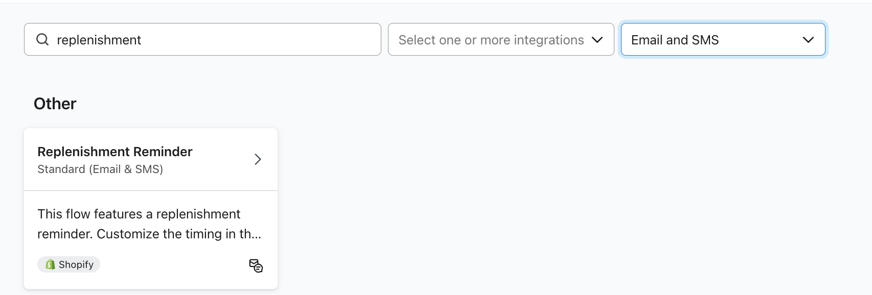 - If SMS is turned on and you still don’t see a pre-built template, check out this article on building your own replenishment flow.