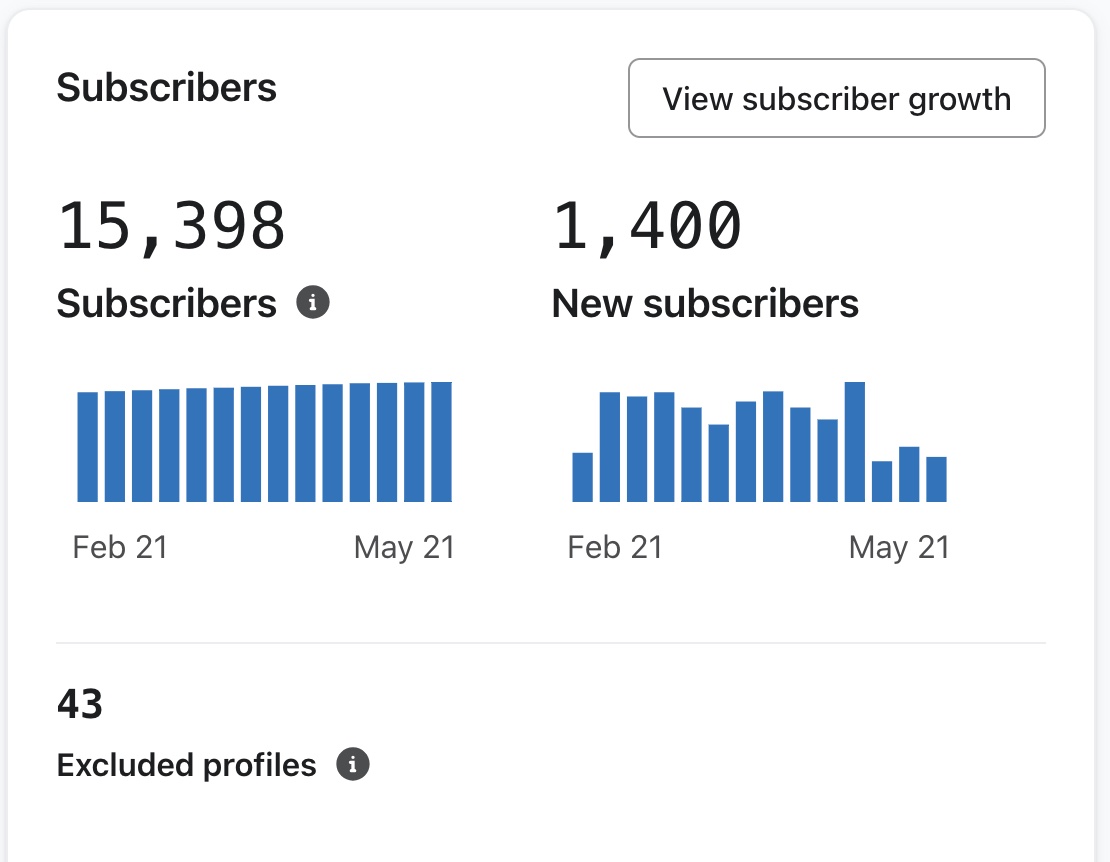 La ficha de suscriptor incluye información sobre los totales de suscriptores y su crecimiento a lo largo del tiempo. También puedes navegar hasta el informe de crecimiento de suscriptores desde aquí si quieres saber más sobre las fuentes de suscriptores con más detalle.
