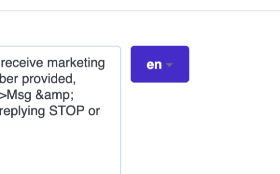 - Lägg till text om information om samtycke. Du måste inkludera ett informationsspråk för Efterlevnad. Se till att inkludera villkoren för ditt program för sms-marknadsföring i dina tjänstevillkor och din sekretesspolicy. Observera att du måste använda HTML i informationsrutan. Exempel på informationstext:
