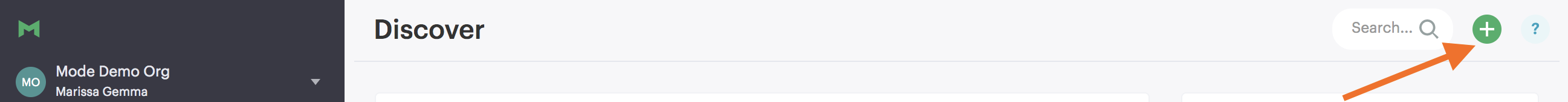 Open a second browser window to Mode and log in. If you don't already have a Mode account, create one here. You'll arrive at your homepage. You can use the homepage to quickly access a project you were working on previously. Since you probably haven't used Mode yet, click New Report to get started.