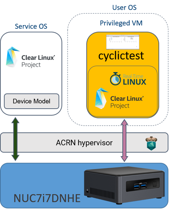 To benefit from these techniques, the OS running in the VM should also behave as a real-time system. In this tutorial, we explain how to run a Privileged VM based on a modified Clear Linux* OS using PREEMPT_RT real-time kernel patches from the Real-Time Linux collaborative project.