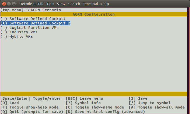 option for the ACRN Scenario configuration:Press D to save the minimum configurations to a default file