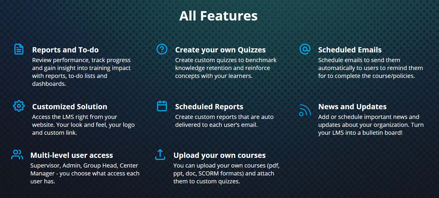 Designed as a people-centric LMS, Tovuti makes learning fun and management simple – boosting productivity for users and admins alike. Generate courses in seconds with AI. Increase learner engagement with interactive videos, memory games, and 40+ other gamification options. Create bespoke experiences with customizable learning paths. Effortlessly integrate with your current ecosystem. Make data-driven decisions with robust and easy-to-read data reporting. Choose from hundreds of pre-built courses on everything from OSHA to DE&I, sales, leadership training, and more. And reduce manual efforts with robust automation. All on one secure, turnkey platform!