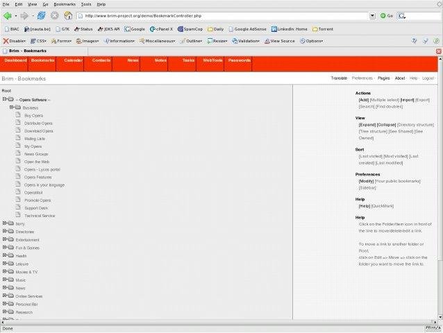 BRIM is a MVC framework, written in PHP and based on items with a hierarchical relationship. The list of plugins make BRIM a Information Manager with plugins like bookmarks, a calendar, contacts tasks, notes, RSS etc. The application is multilingual.